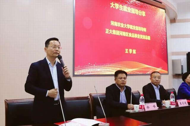 王学斌***总裁讲述了自己的奋斗历程,并结合自身经历和正大集团事业规划,为在场毕业生做就业指导报告。为大家的就业选择提供指导,提醒同学们选择自己适合的工作。