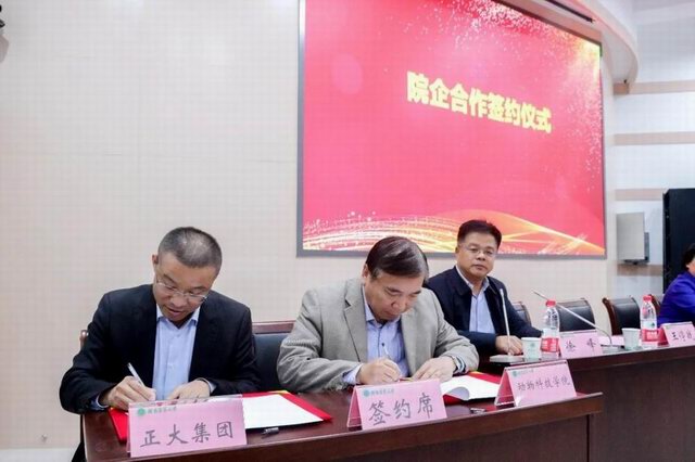 正大集团王学斌***总裁、王停战总裁与河南农业大学食品科学技术学院、动物科技学院学院分别签署校企合作协议。与会人员就后期深化合作、开展学习交流、促进人才培养、考察实训基地、创立合作项目、设置研发课题等多个领域进行了深入交流。