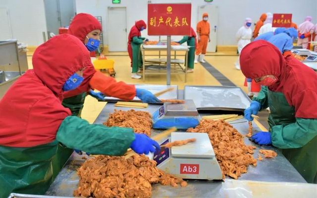为提升生产加工效率让基层员工有展现自我的机会形成“比、学、赶、帮、超”的氛围,本次竞赛共分为2个项目:小酥肉原料肉切条比赛和藤椒猪肉串穿串比赛。食品事业部各车间分别派出6名员工组成代表队参与两项比赛,在规定时间内根据加工产品的产量与合格率由现场品管进行打分,***终两项比赛得分相加决出本次竞赛的总分和排名。